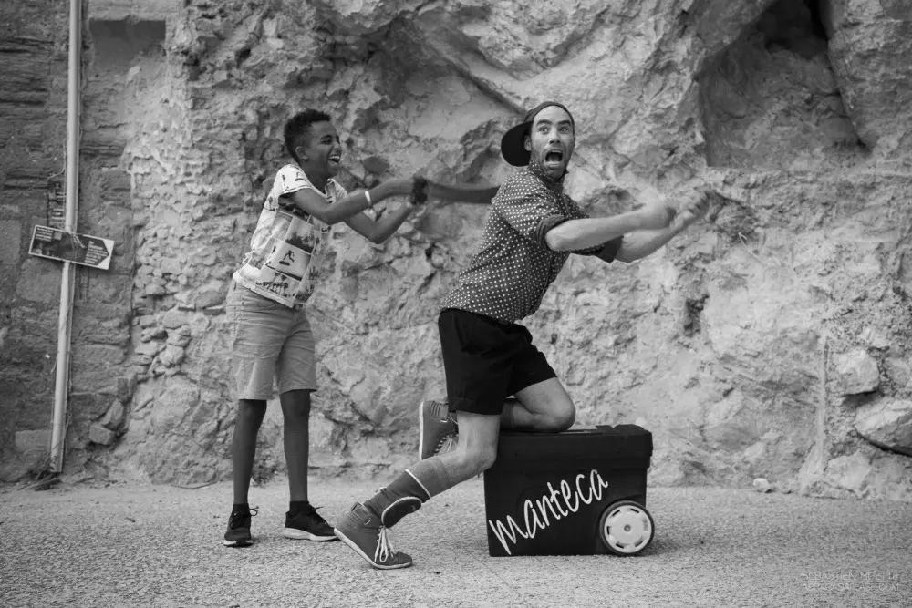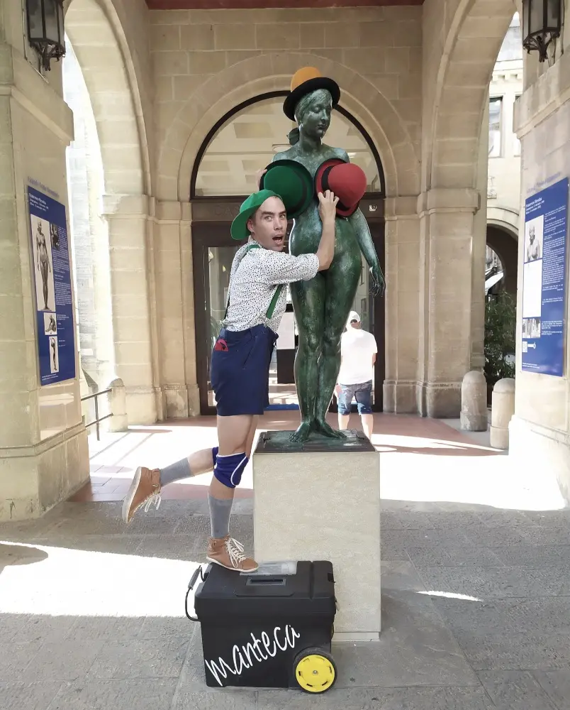 Espectáculo multidisciplinario de humor para toda la familia donde Manteca se encuentra con situaciones divertidas haciendo participe al público; compartiendo sus éxitos y fracasos, combinando técnicas de malabares, teatro, danza y pantomima.